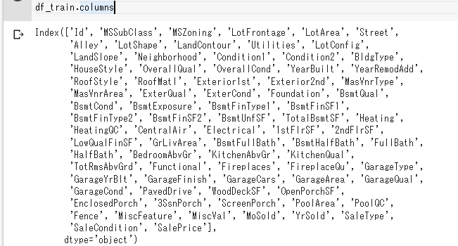 df_trainのカラムをみてみます。