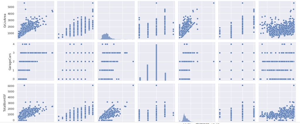 そのため、GarageAreaではなく、SalePriceとの相関がより強いGarageCarsを使用するとよいでしょう。