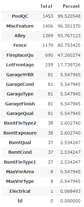 percent = (df_train.isnull().sum()/df_train.isnull().count()*100).sort_values(ascending=False)