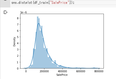 seabornを使って、SalePriceをみてみます。