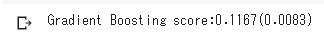 print('Gradient Boosting score:{:.4f}({:.4f})'.format(score.mean(), score.std()))