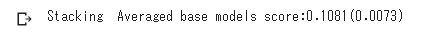 print('Stacking Averaged base models score:{:.4f}({:.4f})'.format(score.mean(), score.std()))